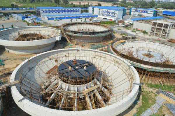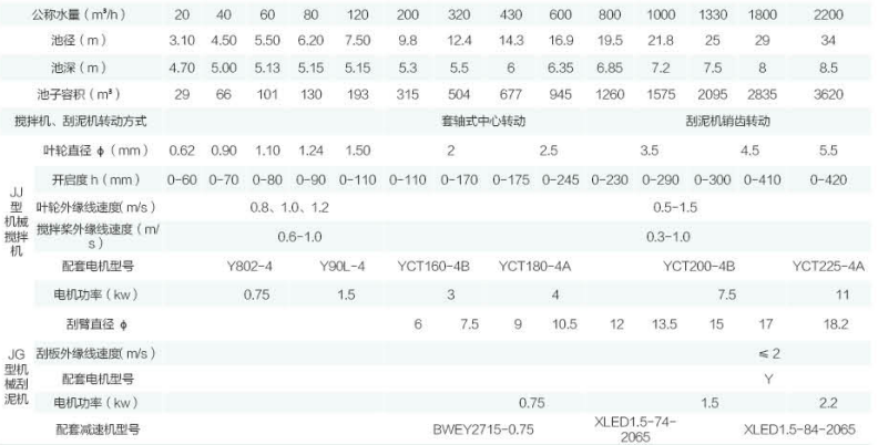 工作特點:機械攪拌(原稱機械加速)澄清池屬泥渣循環型澄清池,其特點是利用機械攪拌的提升作用來完成泥渣回流和接觸反應。加藥混合后的原水進入第一反應室,與幾倍于原水的循環泥渣在葉片的攪動下進行接觸反應。然后經葉輪提升至第一反應室繼續反應,以結成較大的絮粒。再通過導流室進入分離室進行沉淀分離。這種水池不僅適用于一般的澄清也適用于石灰軟化的澄清。