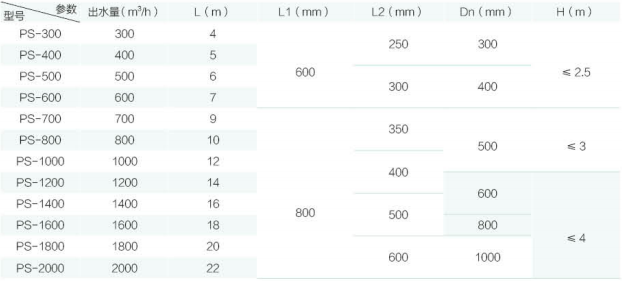 單臺水量計算:Q=S*△H/n*t n-潷水器 數量(臺) t- 汽水時 間 (h)表中潷水深度△H指最大港水深度,同用戶根據實際情況確定。